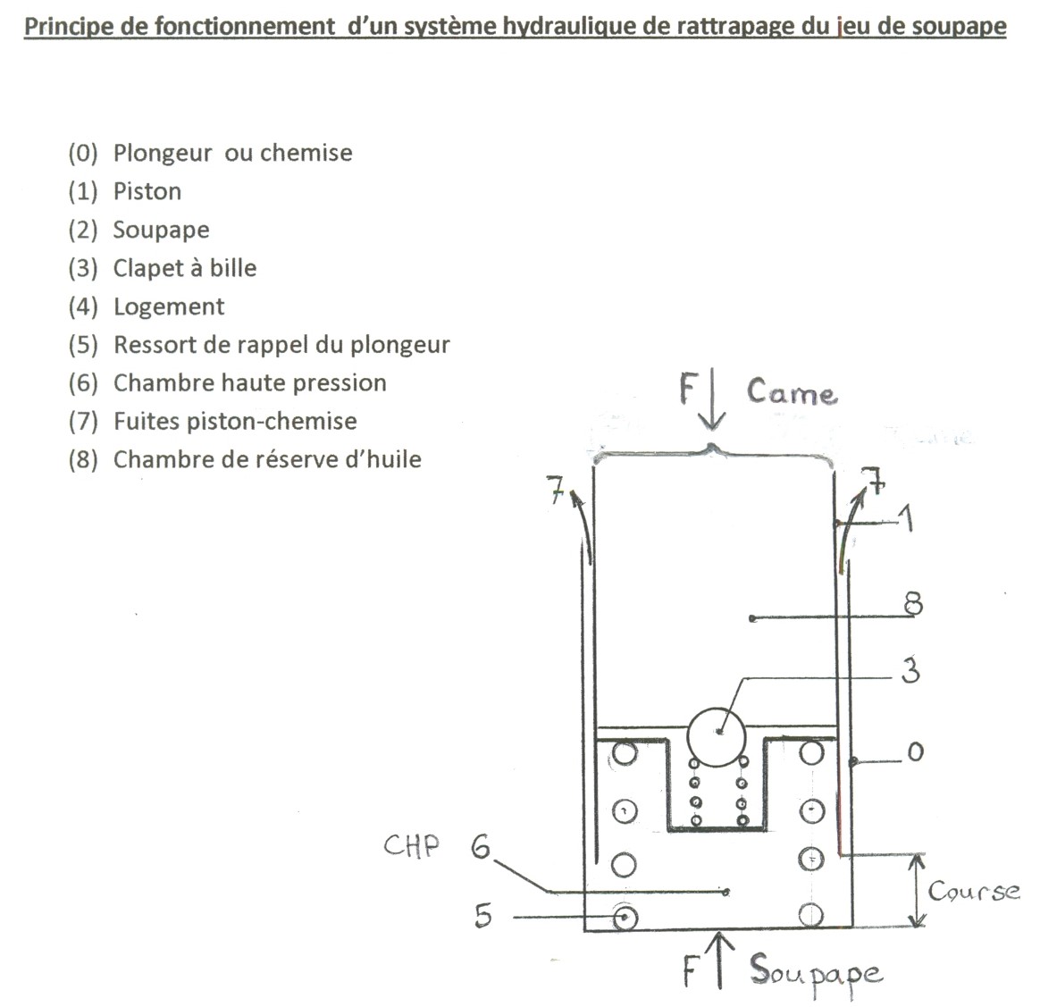La pression alors supérieure dans la chambre de réserve d’huile(8) provoque l’ouverture du clapet (3) et permet le remplissage de la CHP.