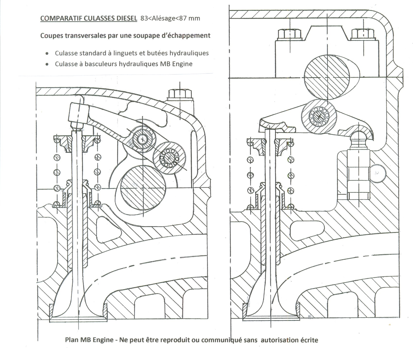 Par rapport au linguet à butée hydraulique qui équipe de nombreux moteurs et réputé pour avoir la plus faible masse en mouvement des systèmes hydrauliques à rattrapage de jeu, le linguet et le basculeur hydraulique MB Engine présentent l’avantage d’une masse en mouvement encore inférieure de dix à vingt pourcents. En effet, les linguets à butées hydrauliques sont réalisés par emboutissage en tôle d’acier adapté à ce type de façonnage avec des déformations plastiques locales. Selon l’application, l’épaisseur des tôles peut varier entre 3 et plus de 4 mm afin que le linguet demeure en dehors du domaine de rupture en fatigue à la flexion. La technologie différente des linguets ou basculeurs MB Engine autorise l’utilisation d’aciers alliés à hautes caractéristiques mécaniques avec des épaisseurs environ 30% inférieures.